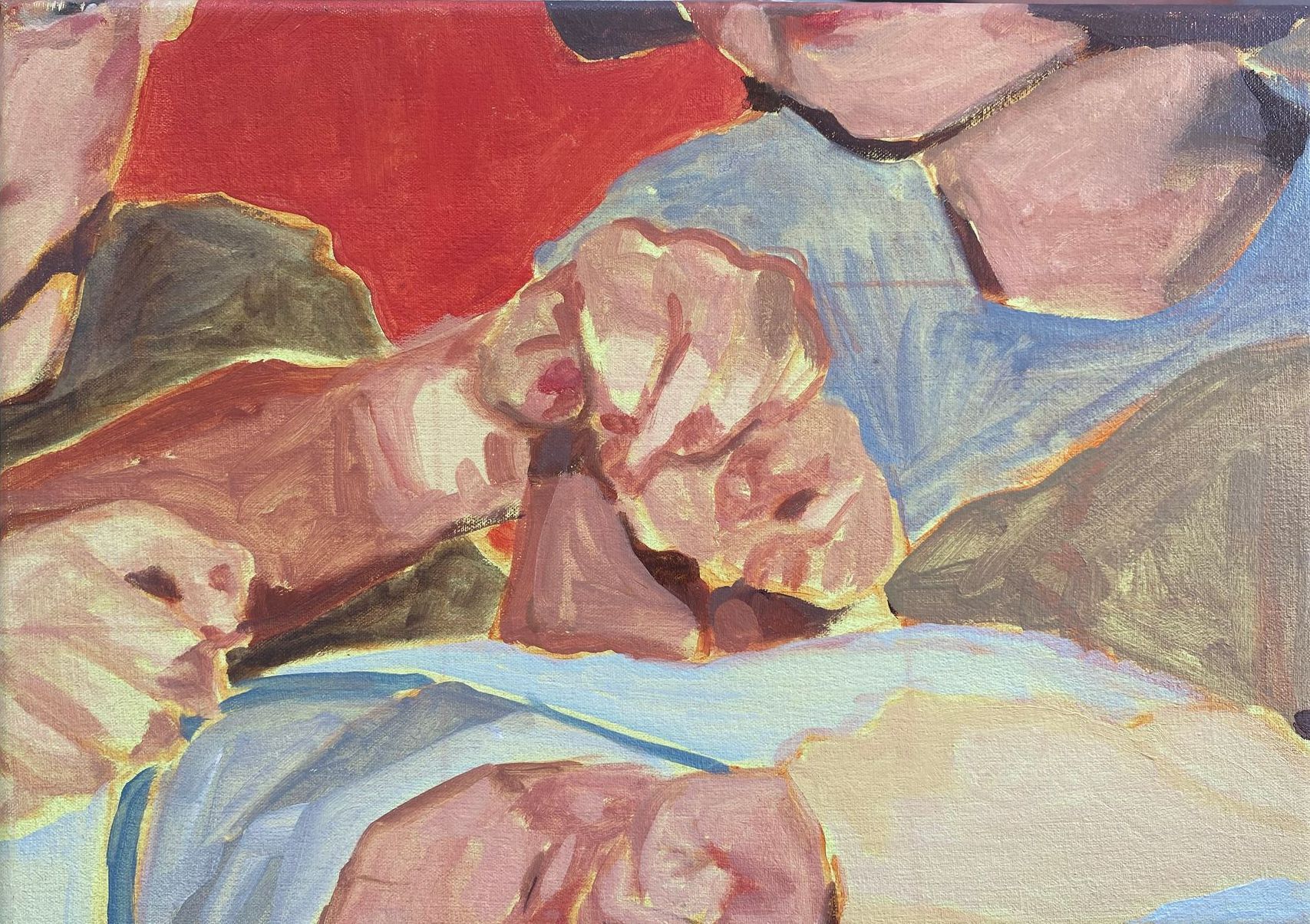 #fineart #contemporaryart #painting #oilpainting #oiloncanvas #unprimedcanvas #red #memories